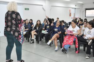 Nossos alunos do 7º ano participaram de mais uma palestra sobre gêneros textuais. Dessa vez, o CONTO POPULAR foi o escolhido pela Professora Marly e a convidada, professora Maria José Gargantini Moreira da Silva, com seu currículo impecável e uma vida dedicada ao ensino da língua portuguesa, nos presenteou com sua narrativa envolvente, enriquecendo mais ainda o aprendizado dos nossos alunos.